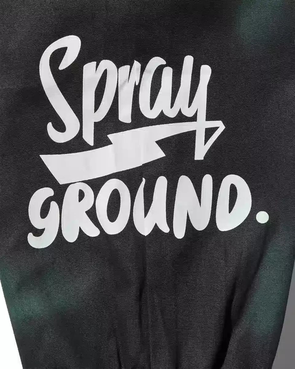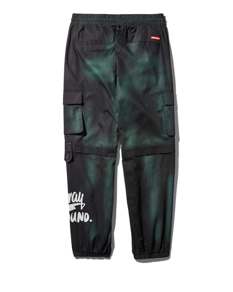 Vertikales Haifischmaul-Band im Nackenbereich, elastischer Bund, Cargotaschen an den Seitenbeinen, Gesäßtaschen, Falten am Beinabschluss, versetzter SPRAYGROUND-Logoprint am Saum, Sprayground-Logo aus Gummi an der rechten Gesäßtasche