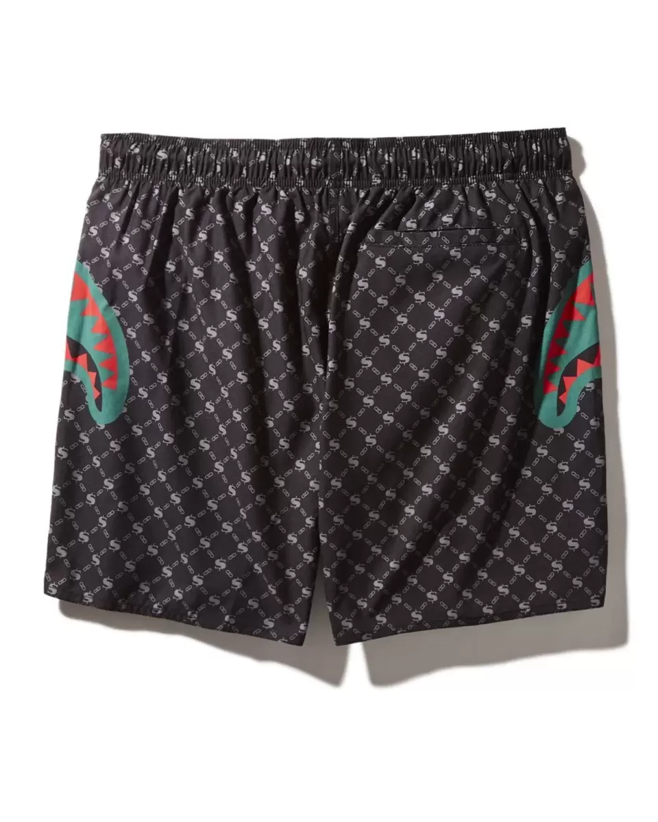 Details: Allover-Print, elastischer Bund mit Kordelzug, Gesäßtasche mit Klettverschluss, SG-Logo am vorderen Bein, Haifischmaul-Print an der Seite hinten
