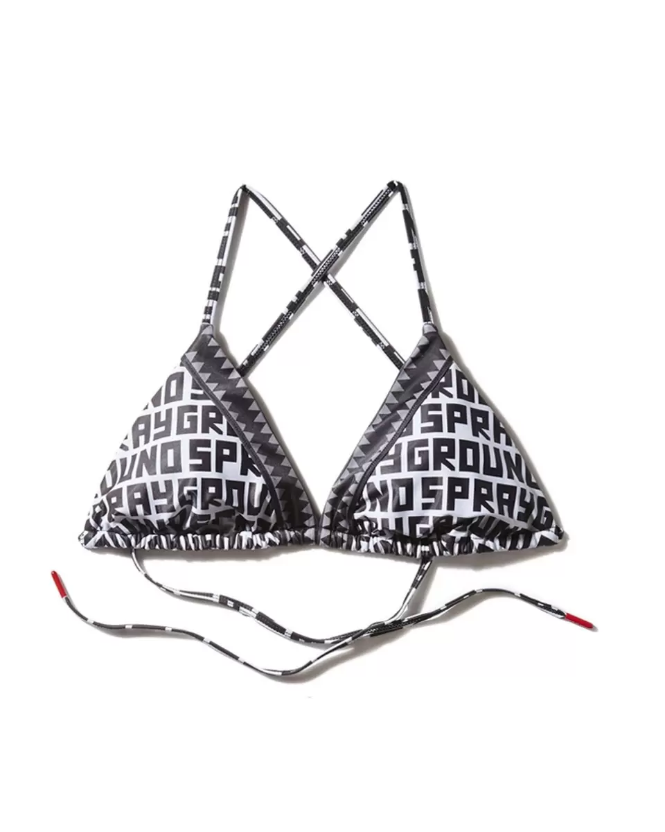 MATERIALZUSAMMENSETZUNG: 83 % Polyester, 17 % Elastan. Eigenschaften: Kontrastierendes, vertikal bedrucktes Haifischmaul-Band. Spaghettiträger zum Binden. Verstellbare Träger am Rücken. Wandelbare Träger am Rücken für gekreuzte oder gerade Trageweise. Herausnehmbare BH-Cups.