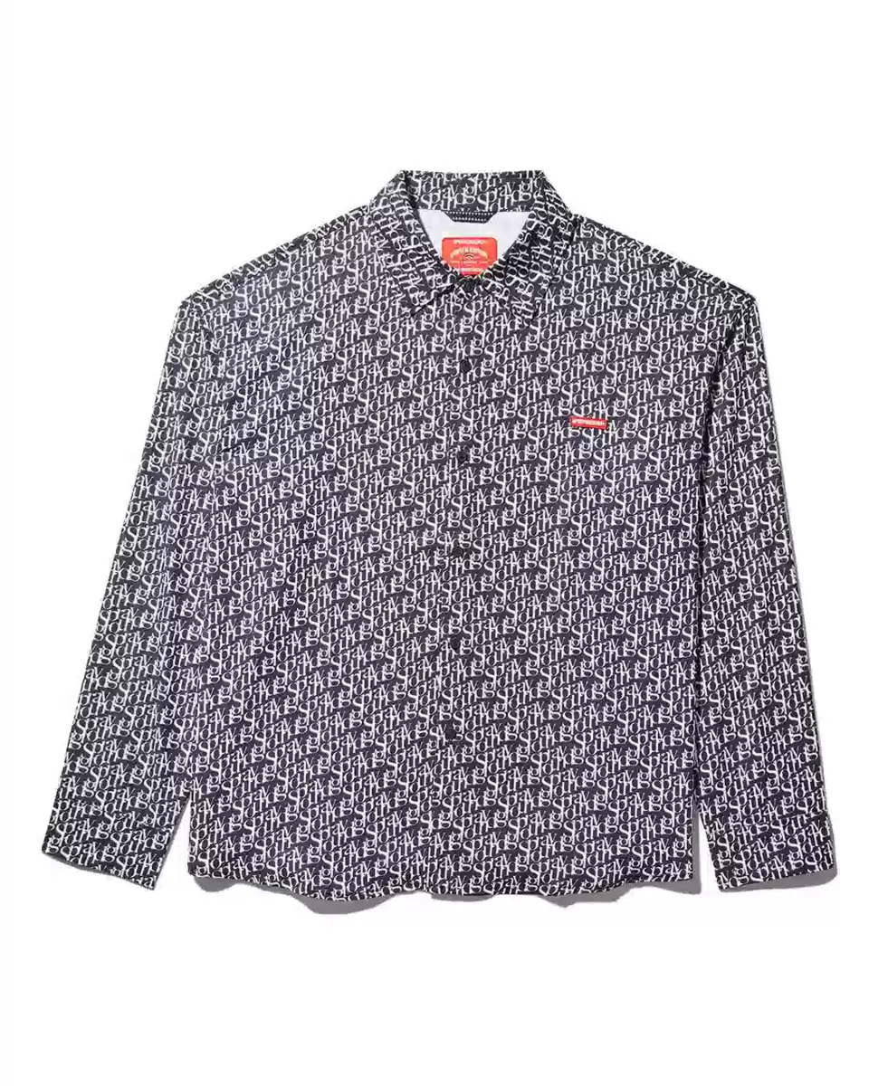 MATERIALZUSAMMENSETZUNG 100 % Polyester MERKMALE Knopfleiste vorne Ärmelbündchen mit Knopfverschluss Allover-Logoprint im Sprühnebel-Design Gummi-Logo-Emblem im Sprühnebel-Design