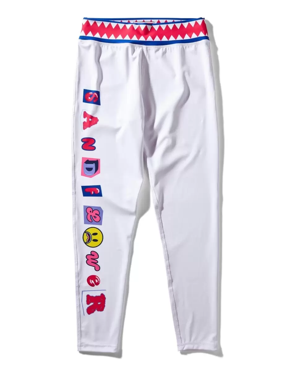 Sprayground präsentiert in Zusammenarbeit mit der multidisziplinären Künstlerin Sandflower die erste Capsule Collection für Damenmode. Von den Machern der A.I. Collection – jetzt mit entspannten Vibes für Flugreisen. Materialzusammensetzung: 90 % Polyester / 10 % Elastan. Details: Haifischmaul-Bund, Sandflower-Logo am Bein.