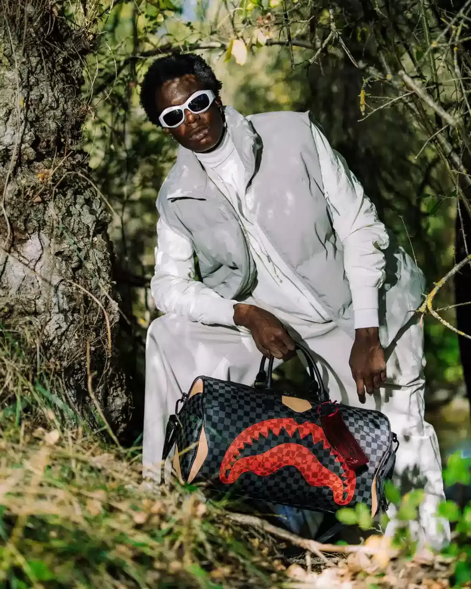 Abmessungen: 50,8 x 25,4 x 27,3 cm (20″ x 10″ x 10,75″) Metall-Reißverschlusstasche, Reißverschlüsse auf der Rückseite, Reißverschlusstasche für Sneaker, goldfarbene Reißverschlüsse, verstellbare Riemen für individuelle Anpassung, Metall-Reißverschlüsse mit Metallbeschlägen, Beutel mit Sprayground-Geld