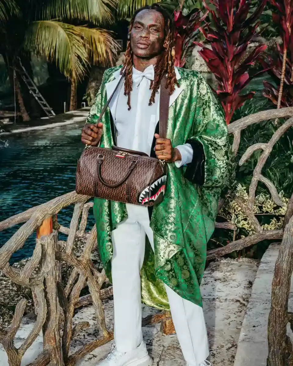 Abmessungen: 20,3 x 19 x 33 cm (8 x 7,5 x 13 Zoll) Metall-Reißverschlusstasche, Reißverschlüsse auf der Rückseite, Reißverschlusstasche für Sneaker, goldene Reißverschlüsse, verstellbare Riemen für individuelle Größenanpassung, Metall-Reißverschlüsse mit Metallbeschlägen, Beutel mit Sprayground-Geld