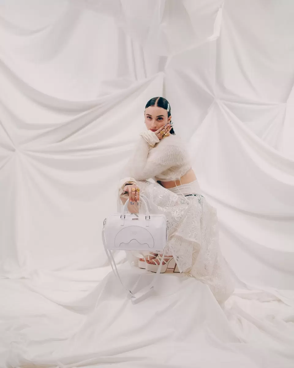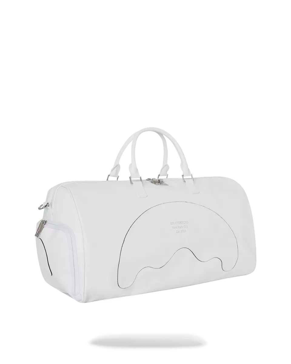 Ausgeschnittenes und genähtes Haifischmaul mit geprägter silberner Folienbeschriftung. 100 % Kunstleder. Maße: 9,5 cm (H) x 12,25 cm (B) x 6 cm (T) (unten). Neue Form, verstellbarer Verschluss.