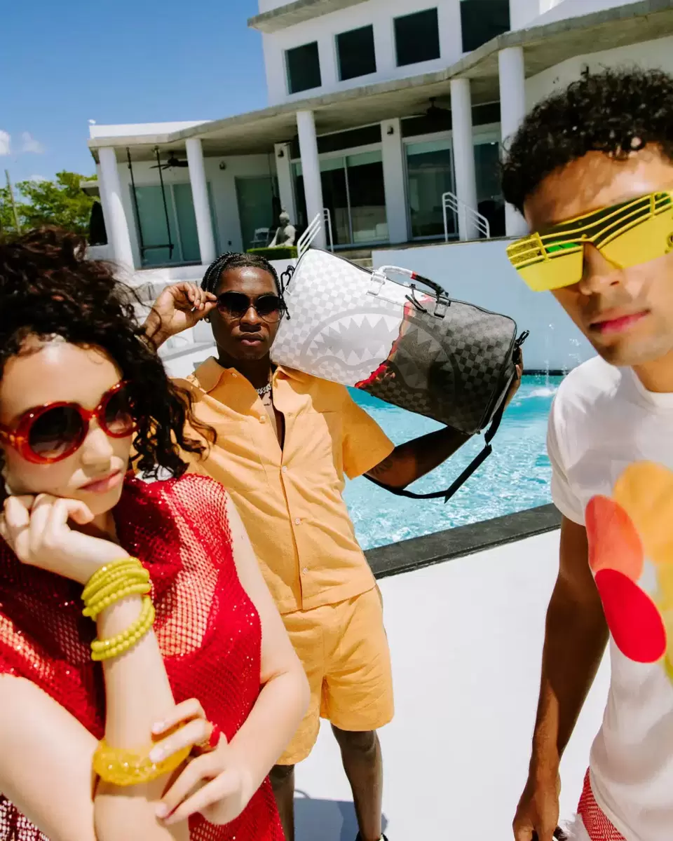 Abmessungen: 50,8 x 25,4 x 27,3 cm (20″ x 10″ x 10,75″) Metall-Reißverschlusstasche, Reißverschlüsse auf der Rückseite, Reißverschlusstasche für Sneaker, goldfarbene Reißverschlüsse, verstellbare Riemen für individuelle Anpassung, Metall-Reißverschlüsse mit Metallbeschlägen, Beutel mit Sprayground-Geld