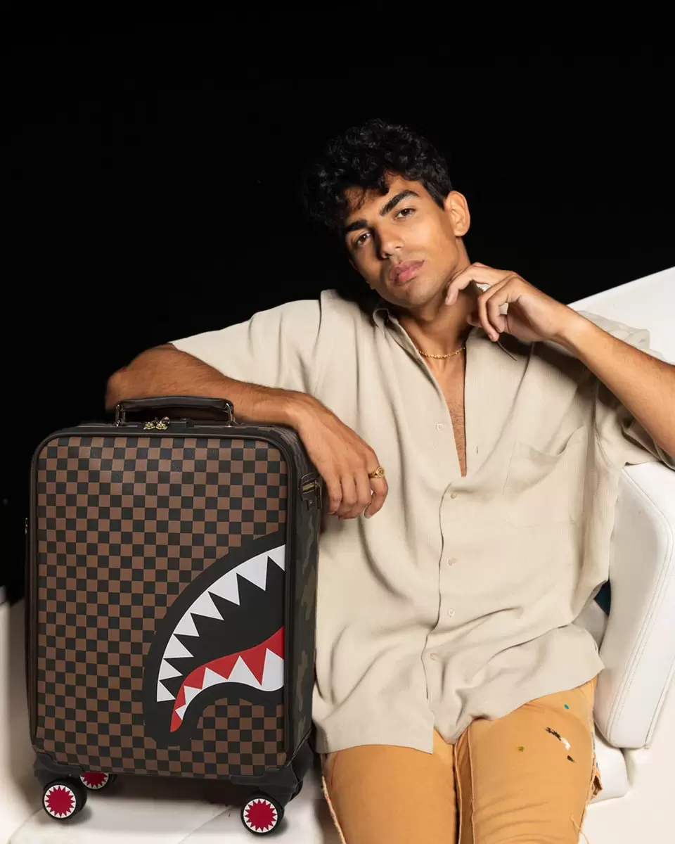 AUSSENGESTALTUNG GOLDENE REISSVERSCHLUSSTASCHE HAIE IN PARIS JETSETTER HANDGEPÄCK