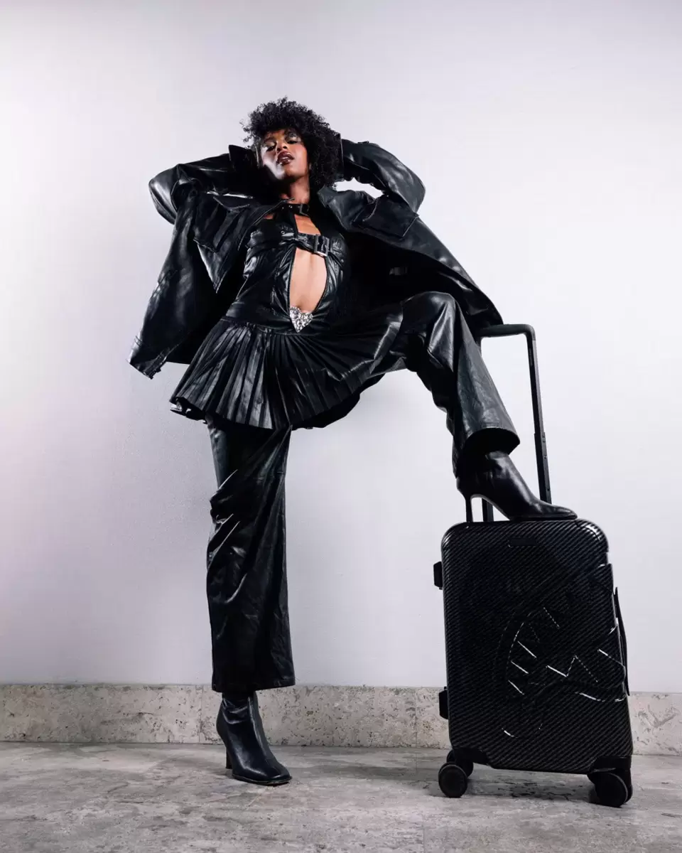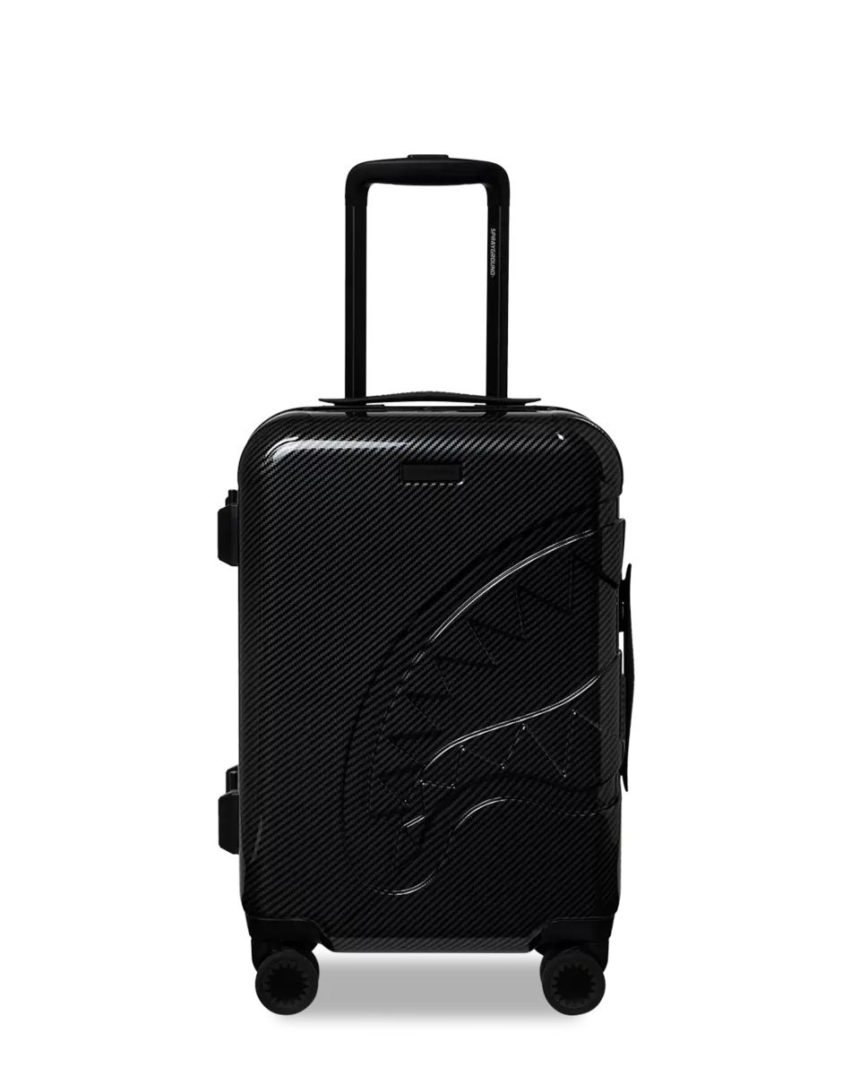 Handgepäck in Carbonfaser-Optik. Mit geprägtem Haifischmaul.