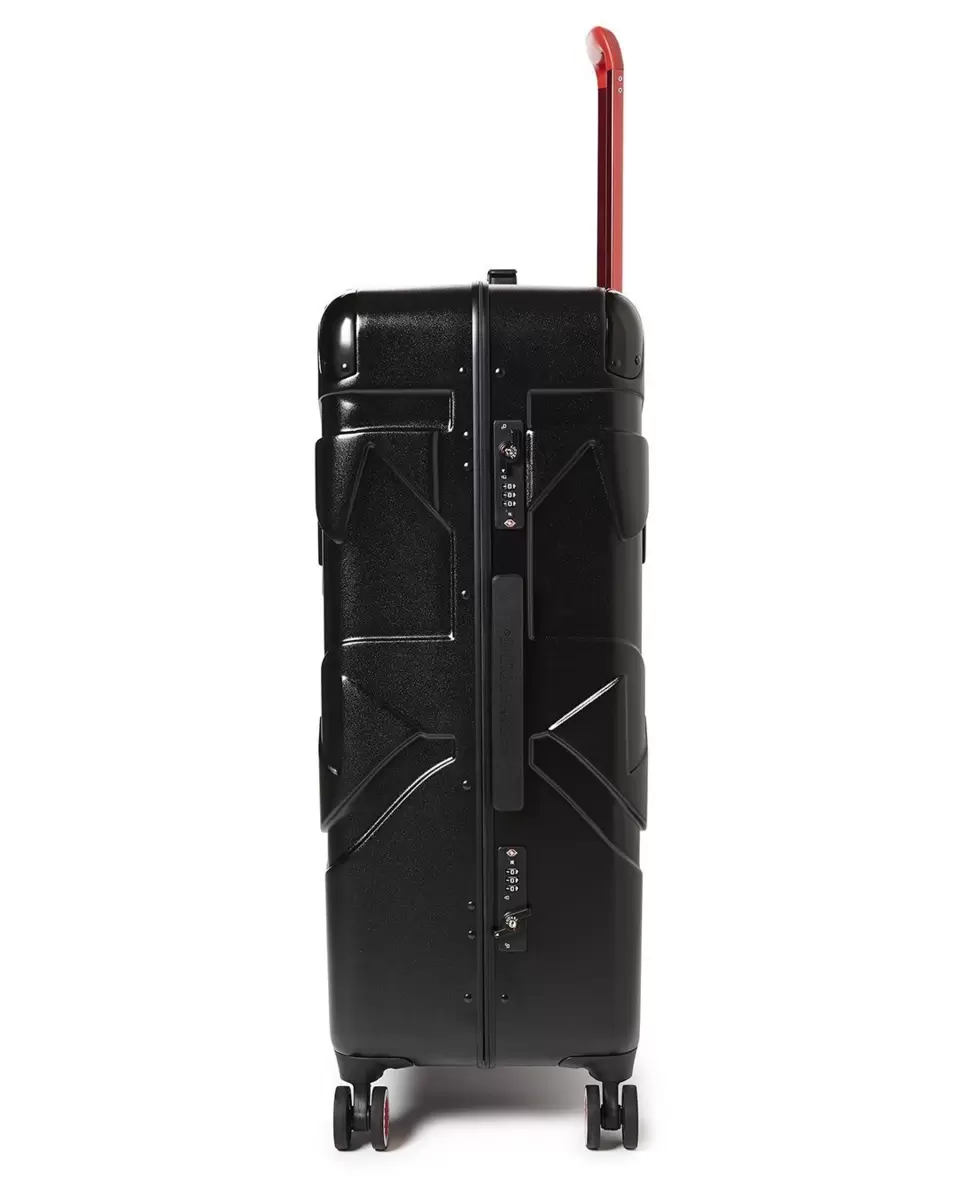 GROSSE KOFFERGRÖSSE 29” PRODUKTDETAILS AUSSEN: PATENTIERTE HAISKULPTUR Nr. D852504, D854321 Robuste und unzerstörbare Polycarbonat-Außenschale TSA-zugelassene Abmessungen mit Rollen: H: 75,4 cm x B: 47 cm x T: 27,9 cm *TSA-Sicherheitsschlösser Rahmen aus Aluminiumlegierung ohne Reißverschluss 4 Doppelrollen mit versenkter Oberfläche Höhenverstellbarer Teleskopgriff INNEN: Mehrere Taschen und Fächer für optimale Organisation Satinfutter mit Geldscheinmuster Netztasche Befestigungsgurte Nylon-Reißverschlüsse mit Metallbeschlägen