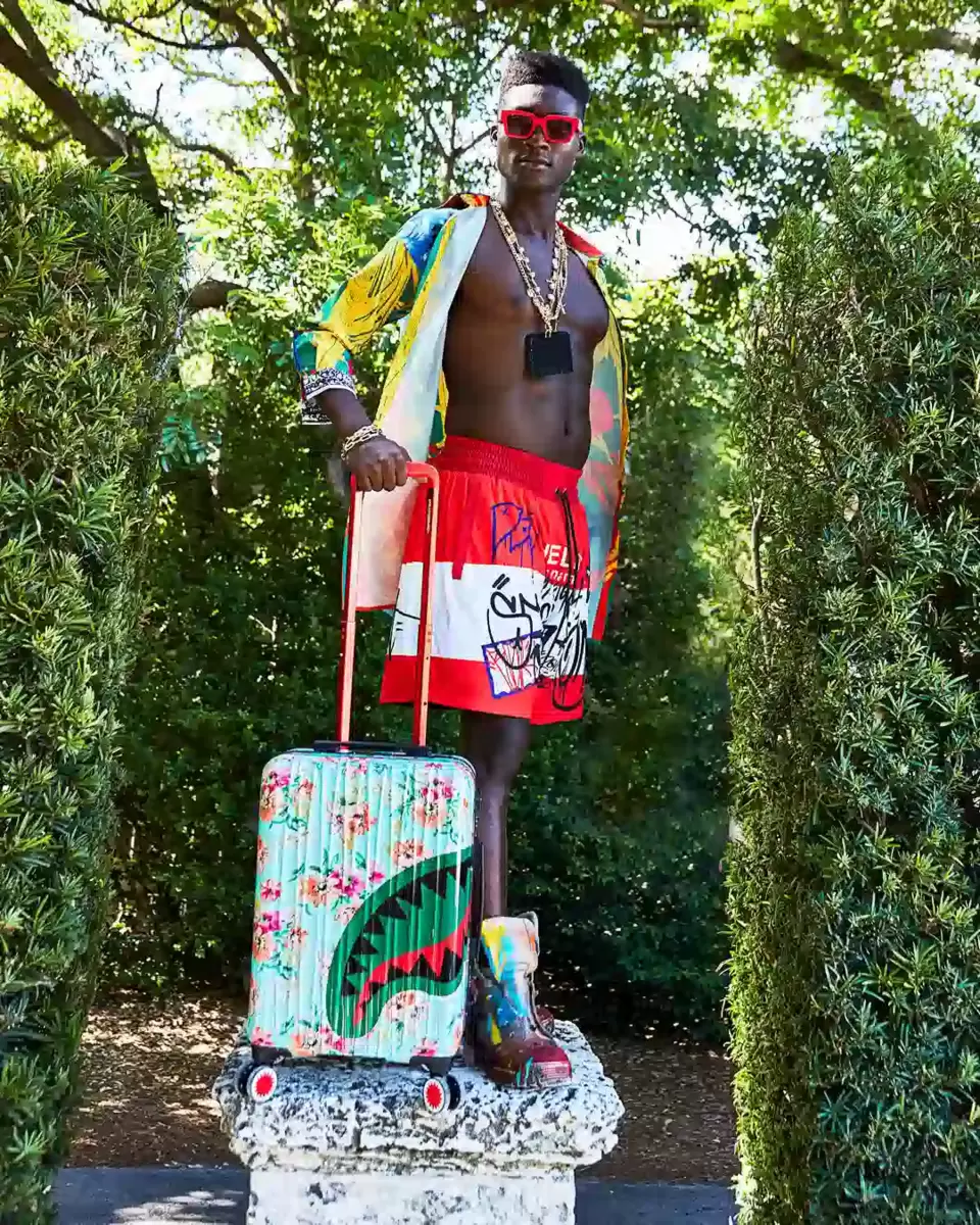 Sprayground-Produkte werden strengen Tests unterzogen, um sicherzustellen, dass die Reiseprodukte, denen Sie vertrauen, höchsten Standards entsprechen. Sollte es bei diesem Sprayground-Gepäckstück zu einem Problem kommen, das auf Material- oder Verarbeitungsfehler zurückzuführen ist, wird Sprayground das Gepäckstück nach eigenem Ermessen gemäß den hierin enthaltenen Garantiebedingungen entweder reparieren oder ersetzen. Die Garantie gilt nur für den Erstkäufer oder Beschenkten des Gepäckstücks und für ein Jahr ab Kaufdatum. Sie deckt ausschließlich Herstellungsfehler ab und keine Schäden durch unsachgemäße Verwendung, wie z. B. den Transport ungewöhnlicher Gegenstände, Fahrlässigkeit, Unfälle, Abrieb, Einwirkung extremer Temperaturen, Lösungsmittel, Säuren, Wasser, normale Abnutzung oder Transportschäden. Die Garantie ist auf den Wert des Produkts beschränkt. Änderungen der Herstellerspezifikationen sind vorbehalten. Das Produkt wird in limitierter Auflage gefertigt. Sollte ein Ersatzprodukt erforderlich sein und nicht mehr verfügbar sein, wird eine Gutschrift ausgestellt. *TSA-Schlösser dienen lediglich dem Schutz vor versehentlichem Öffnen und können Diebstahl des Produkts oder seines Inhalts, Beschädigung oder unbefugten Zugriff durch Flug- oder Flughafenpersonal oder Behörden nicht verhindern. Überprüfen Sie Ihr Produkt sofort nach der Benutzung durch Dritte. Sollte die Ware während des Transports beschädigt werden, reichen Sie möglichst vor der Zollabfertigung eine Schadensmeldung bei dem Transportunternehmen ein, das gegen Beschädigungen Ihres Produkts am Ankunftsort versichert ist.