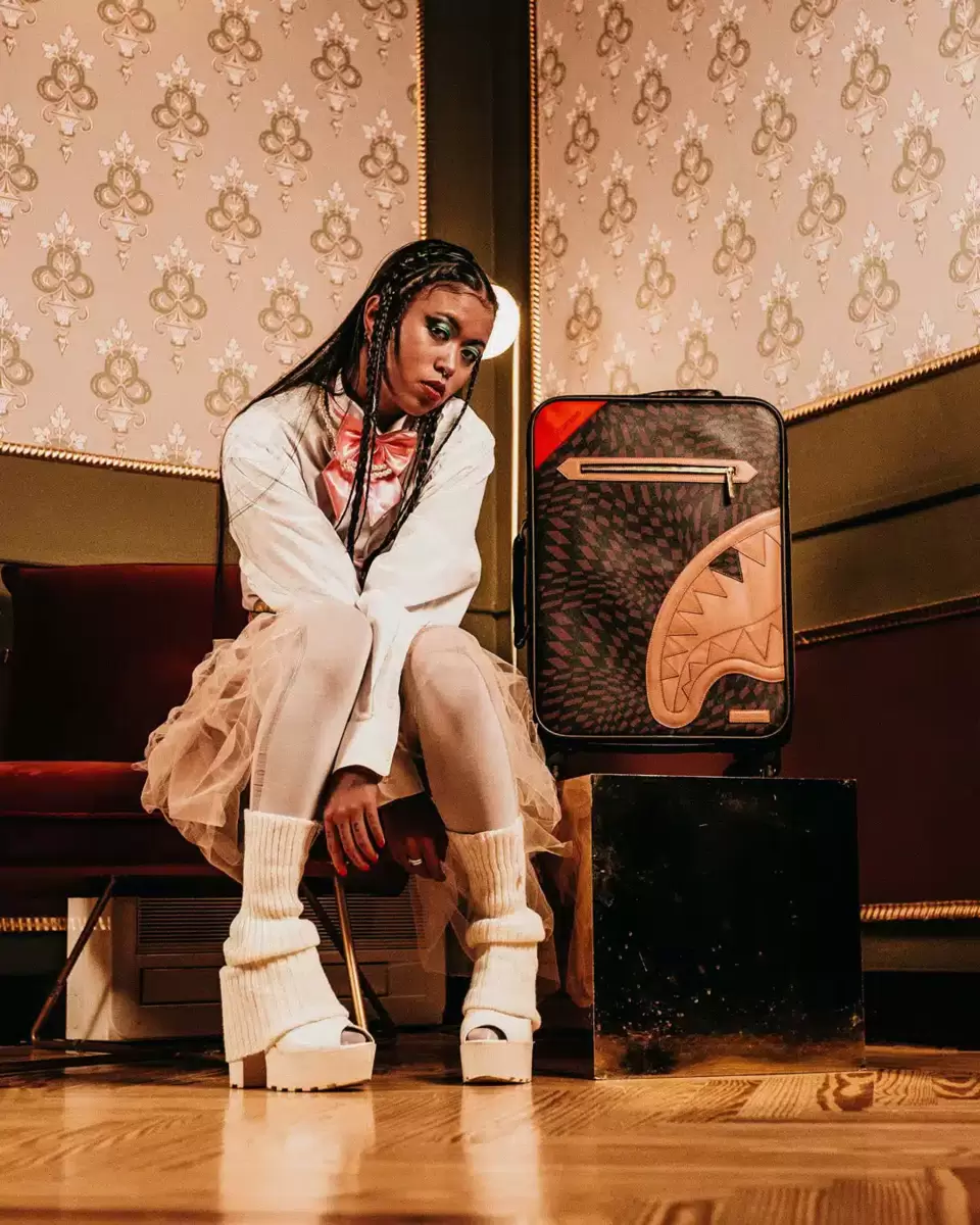 INNEN: Mehrere Taschen und Fächer für optimale Organisation, 3 Reißverschlusstaschen, 4 Netztaschen, Futter aus Satin mit Haifischprint, Organizer-Netztaschen, Befestigungsriemen, Nylon-Reißverschlüsse mit Metallbeschlägen