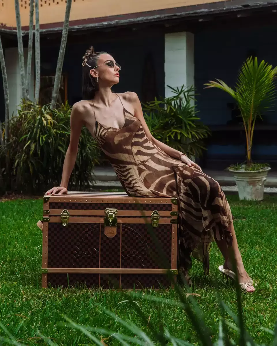| Zuschnitt- und Nähdetails. Innenausstattung mit bedrucktem Grafikdesign. |