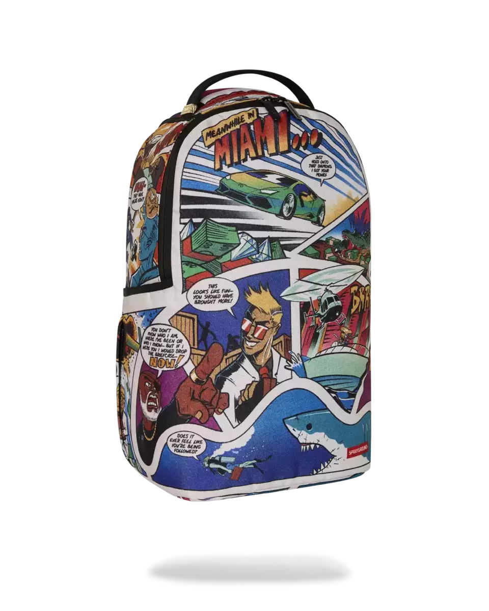 Abmessungen: 45,7 x 15,2 x 29,2 cm (18″ x 6″ x 11,5″) Vordertasche mit Reißverschluss Seitentaschen Reißverschlusstasche Separates Brillenfach aus Velours Ergonomische Netzrückenpolsterung Verstellbare Gurte für individuelle Anpassung Goldfarbene Reißverschlüsse mit Metallbeschlägen Metall-Badge „Sprayground Authentic“ Durchschubtasche auf der Rückseite zur Befestigung am Handgepäck für freie Hände