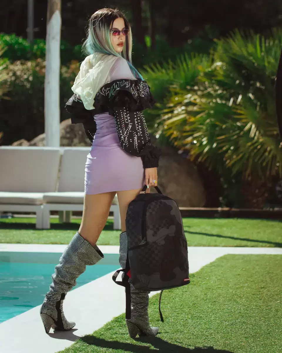 Abmessungen: 45,7 x 15,2 x 29,2 cm Vordertasche mit Reißverschluss Seitentaschen Reißverschlusstasche Separates Brillenfach aus Velours Ergonomische Netzrückenpolsterung Verstellbare Riemen für individuelle Anpassung Goldfarbene Reißverschlüsse mit Metallbeschlägen Metall-Badge „Sprayground Authentic“ Durchschubschlaufe am Rücken zur Befestigung am Handgepäck für freie Hände