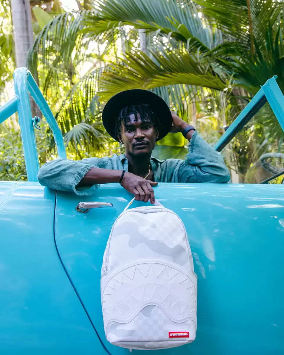 Abmessungen: 45,7 x 15,2 x 29,2 cm Vordertasche mit Reißverschluss Seitentaschen Reißverschlusstasche Separates Brillenfach aus Velours Ergonomische Netzrückenpolsterung Verstellbare Riemen für individuelle Anpassung Goldfarbene Reißverschlüsse mit Metallbeschlägen Metallplakette „Sprayground Authentic“ Durchschubtasche auf der Rückseite zur Befestigung am Handgepäck für freie Hände