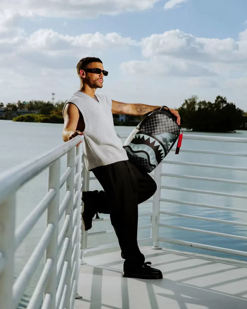 Abmessungen: 45,7 x 15,2 x 29,2 cm Vordertasche mit Reißverschluss Seitentaschen Reißverschlusstasche Separates Brillenfach aus Velours Ergonomische Netzrückenpolsterung Verstellbare Riemen für individuelle Anpassung Goldfarbene Reißverschlüsse mit Metallbeschlägen Metall-Badge „Sprayground Authentic“ Durchschubschlaufe am Rücken zur Befestigung am Handgepäck für freie Hände