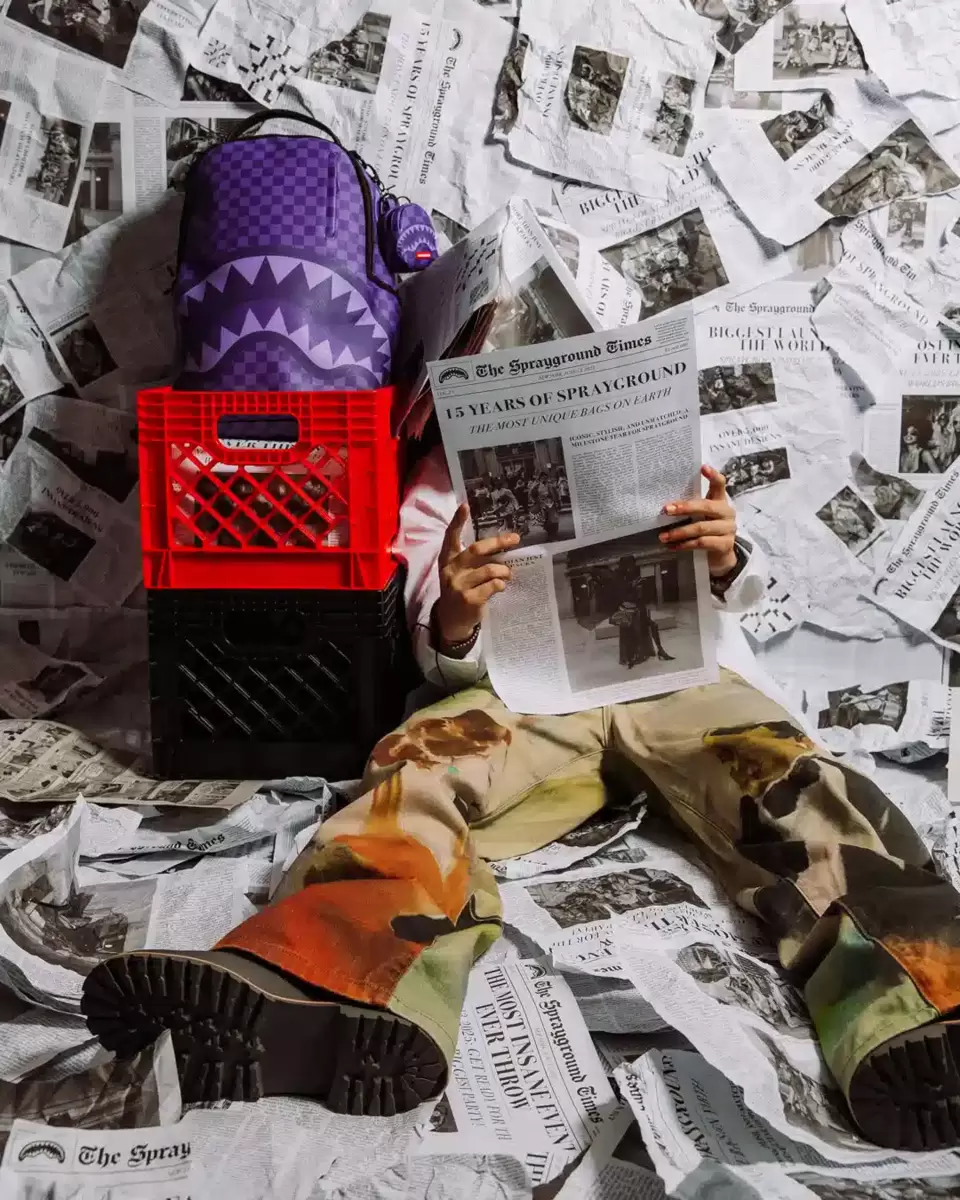 Abmessungen: 45,7 x 15,2 x 29,2 cm Vordertasche mit Reißverschluss Seitentaschen Reißverschlusstasche Separates Brillenfach aus Velours Ergonomische Netzrückenpolsterung Verstellbare Riemen für individuelle Anpassung Goldfarbene Reißverschlüsse mit Metallbeschlägen Metall-Badge „Sprayground Authentic“ Durchschubschlaufe am Rücken zur Befestigung am Handgepäck für freie Hände