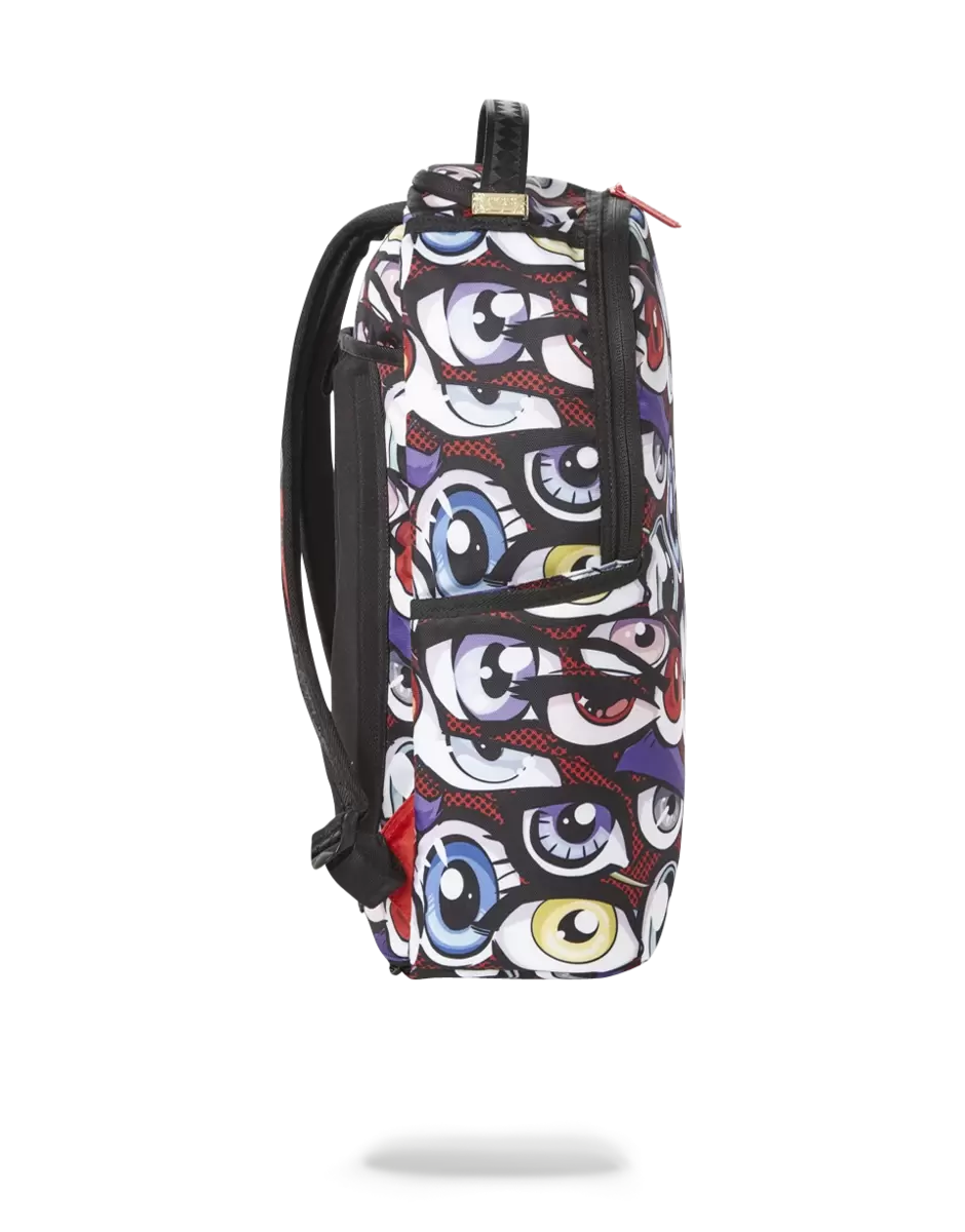 Abmessungen: 45,7 x 15,2 x 29,2 cm Vordertasche mit Reißverschluss Seitentaschen Reißverschlusstasche Separates Brillenfach aus Velours Ergonomische Netzrückenpolsterung Verstellbare Gurte für individuelle Anpassung Rote Reißverschlüsse mit Metallbeschlägen Metallplakette „Sprayground Authentic“ Durchschubtasche auf der Rückseite zur Befestigung am Handgepäck für freie Hände
