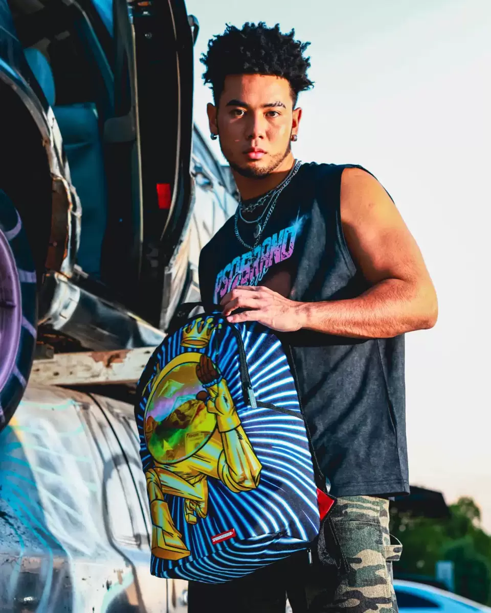Abmessungen: 45,7 x 15,2 x 29,2 cm (18″ x 6″ x 11,5″) Vordertasche mit Reißverschluss Seitentaschen Reißverschlusstasche Separates Brillenfach aus Velours Ergonomische Netzrückenpolsterung Verstellbare Gurte für individuelle Anpassung Goldfarbene Reißverschlüsse mit Metallbeschlägen Metall-Badge „Sprayground Authentic“ Durchschubtasche auf der Rückseite zur Befestigung am Handgepäck für freie Hände