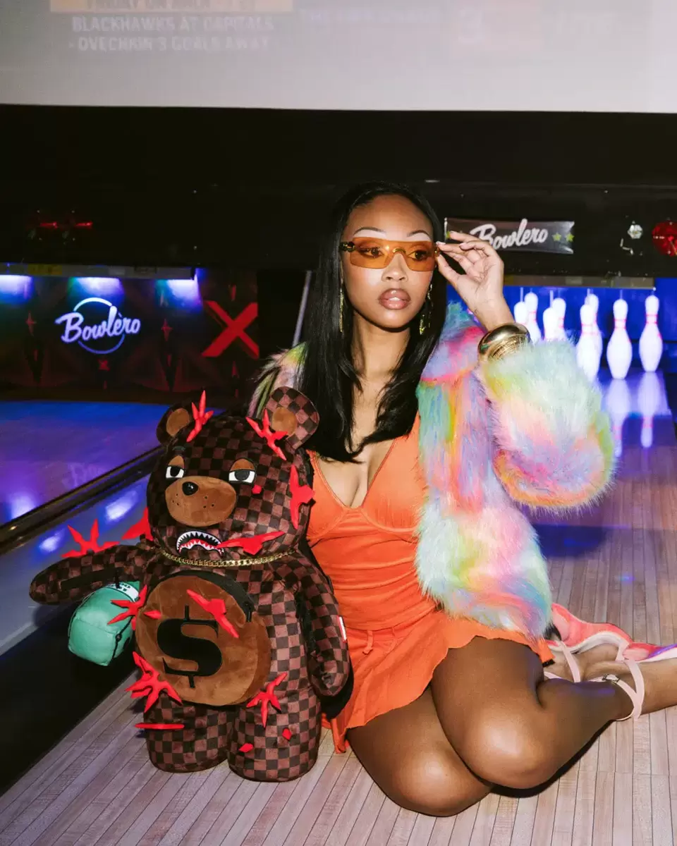 Der flauschige Geldbär, bedeckt mit Ninja-Sternen aus Schaumstoff, ist zurück – als limitierte Teddybär-Rucksack-Edition. Außenmaße: 25 x 7 x 12 cm, mit Reißverschlusstasche.