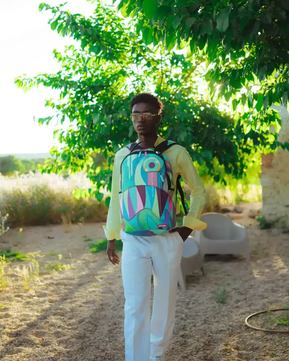 Abmessungen: 45,7 x 15,2 x 29,2 cm Vordertasche mit Reißverschluss Seitentaschen Reißverschlusstasche Separates Brillenfach aus Velours Ergonomische Netzrückenpolsterung Verstellbare Riemen für individuelle Anpassung Goldfarbene Reißverschlüsse mit Metallbeschlägen Metall-Badge „Sprayground Authentic“ Durchschubschlaufe am Rücken zur Befestigung am Handgepäck für freie Hände