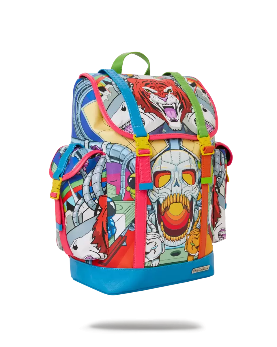 Abmessungen: 45,7 x 15,2 x 29,2 cm (18″ x 6″ x 11,5″) Überschlag mit verstellbaren Metallschnallen und Kordelzug Zwei seitliche Cargotaschen mit Metallschnallen und Kordelzug Reißverschlusstasche Ergonomische Netzrückenpolsterung Verstellbare Riemen für individuelle Anpassung Geprägtes Logo auf dem Rückenriemen