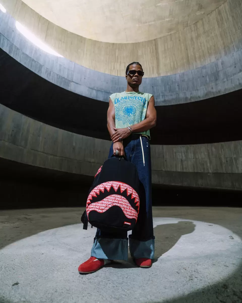 Baumwollrucksack mit Gummimund und -augen im Sprayground-Muster