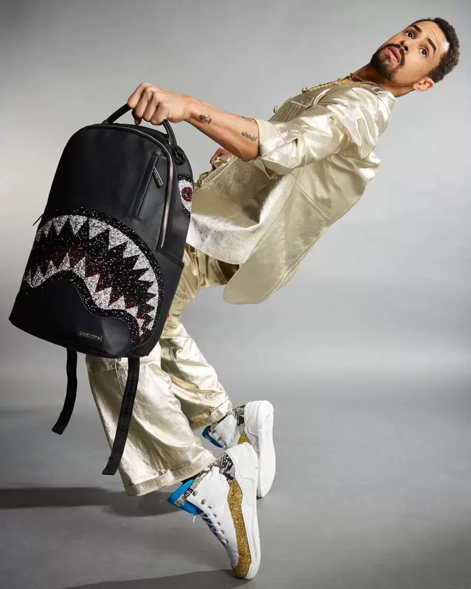 Abmessungen: 45,7 x 15,2 x 29,2 cm Vordertasche mit Reißverschluss Seitentaschen Reißverschlusstasche Separates Brillenfach aus Velours Ergonomische Netzrückenpolsterung Verstellbare Riemen für individuelle Anpassung Goldfarbene Reißverschlüsse mit Metallbeschlägen Metall-Badge „Sprayground Authentic“ Durchschubtasche auf der Rückseite zur Befestigung am Handgepäck für freie Hände