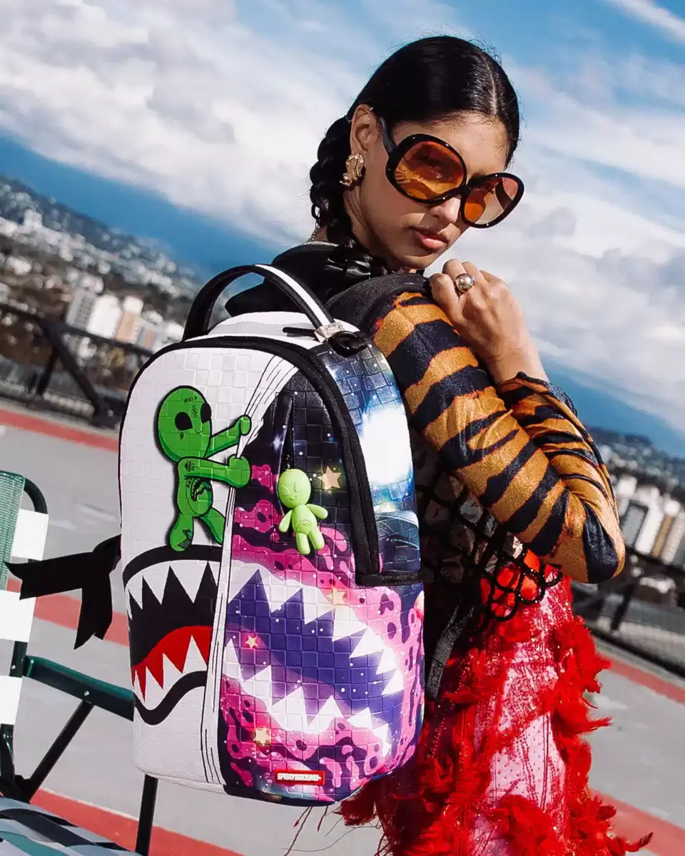 Abmessungen: 45,7 x 15,2 x 29,2 cm Vordertasche mit Reißverschluss Seitentaschen Reißverschlusstasche Separates Brillenfach aus Velours Ergonomische Netzrückenpolsterung Verstellbare Riemen für individuelle Anpassung Goldfarbene Reißverschlüsse mit Metallbeschlägen Metallplakette „Sprayground Authentic“ Durchschubtasche auf der Rückseite zur Befestigung am Handgepäck für freie Hände