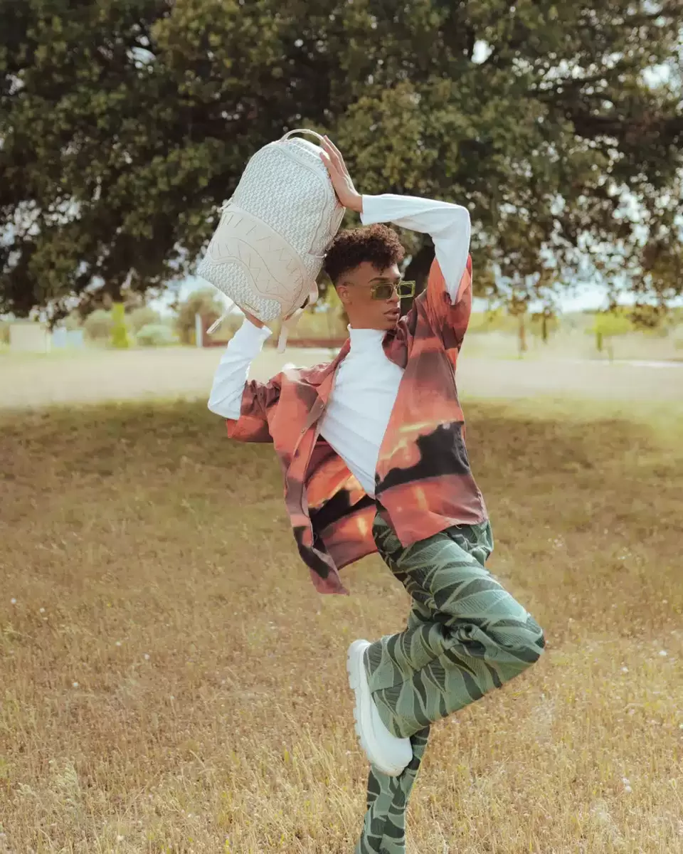 Abmessungen: 45,7 x 15,2 x 29,2 cm Vordertasche mit Reißverschluss Seitentaschen Reißverschlusstasche Separates Brillenfach aus Velours Ergonomische Netzrückenpolsterung Verstellbare Riemen für individuelle Anpassung Goldfarbene Reißverschlüsse mit Metallbeschlägen Metall-Badge „Sprayground Authentic“ Durchschubschlaufe am Rücken zur Befestigung am Handgepäck für freie Hände