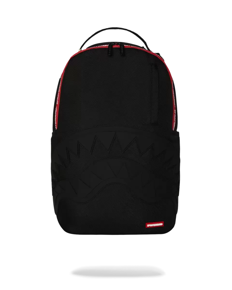 Ballistisches Polyester mit SPRAYGROUND-bedrucktem Reißverschlussband und einem Haifischmaul aus Gummi.
