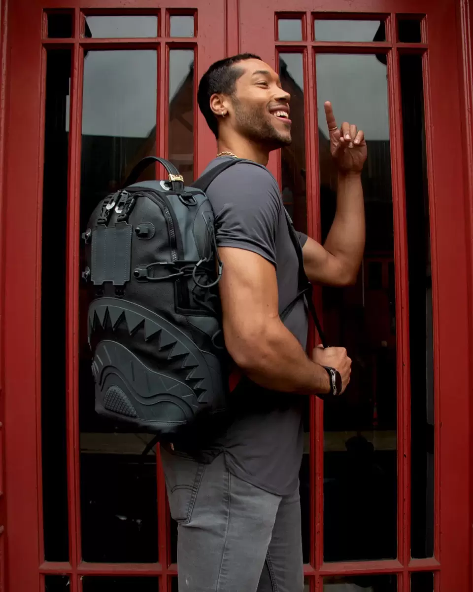 Abmessungen: 45,7 x 15,2 x 29,2 cm Vordertasche mit Reißverschluss Seitentaschen Reißverschlusstasche Separates Brillenfach aus Velours Ergonomische Rückenpolsterung aus Netzgewebe Verstellbare Gurte für individuelle Anpassung Goldfarbene Reißverschlüsse mit Metallbeschlägen Metall-Badge „Sprayground Authentic“ Durchschubtasche am Rücken zur Befestigung am Handgepäck für freie Hände