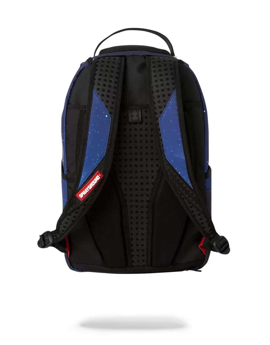 Abmessungen: 45,7 x 15,2 x 29,2 cm Vordertasche mit Reißverschluss Seitentaschen Reißverschlusstasche Separates Brillenfach aus Velours Ergonomische Netzrückenpolsterung Verstellbare Gurte für individuelle Anpassung Rote Reißverschlüsse mit Metallbeschlägen Metallplakette „Sprayground Authentic“ Durchschubtasche auf der Rückseite zur Befestigung am Handgepäck für freie Hände