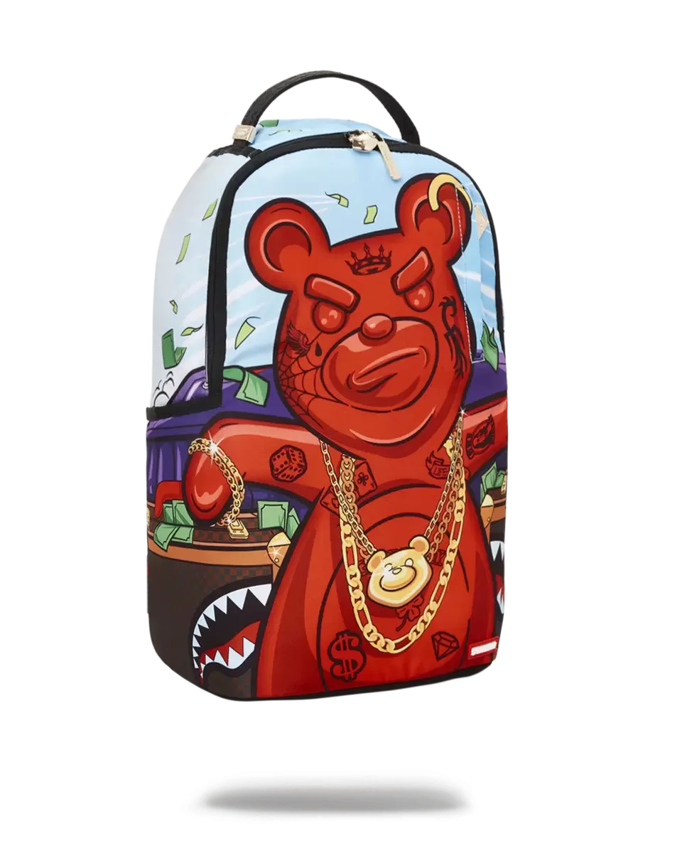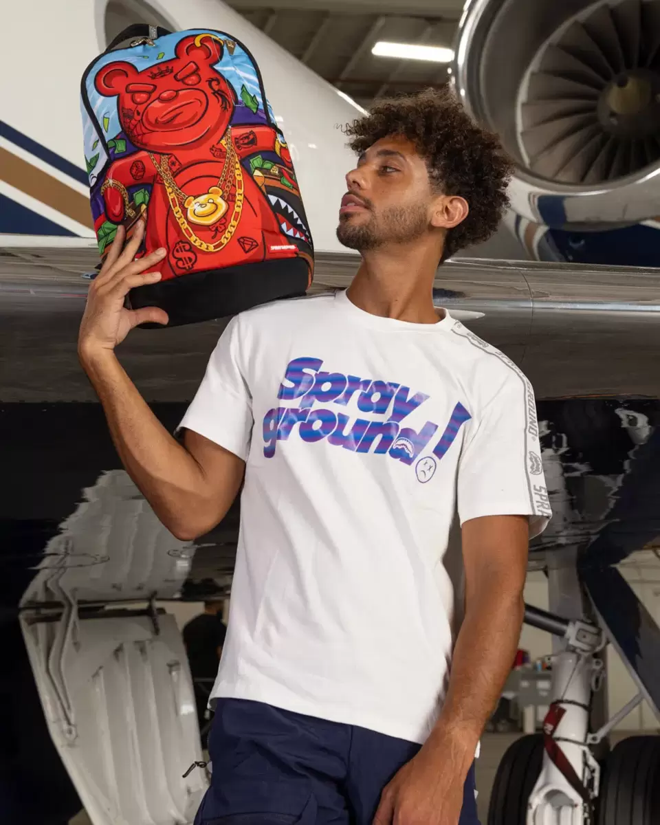 Abmessungen: 45,7 x 15,2 x 29,2 cm Vordertasche mit Reißverschluss Seitentaschen Reißverschlusstasche Separates Brillenfach aus Velours Ergonomische Netzrückenpolsterung Verstellbare Gurte für individuelle Anpassung Grüne Reißverschlüsse mit Metallbeschlägen Metall-Badge „Sprayground Authentic“ Durchschubschlaufe am Rücken zur Befestigung am Handgepäck für freie Hände