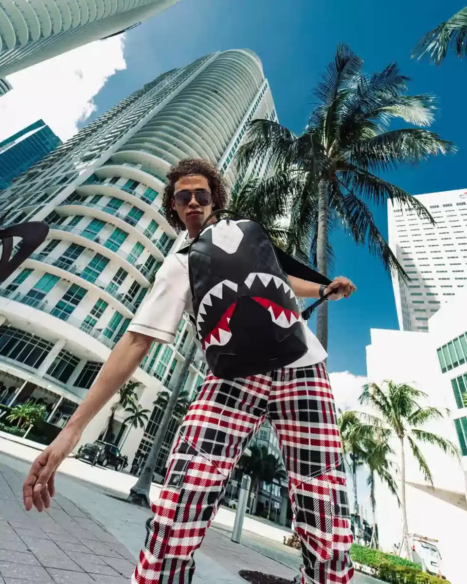 Abmessungen: 45,7 x 15,2 x 29,2 cm Vordertasche mit Reißverschluss Seitentaschen Reißverschlusstasche Separates Brillenfach aus Velours Ergonomische Netzrückenpolsterung Verstellbare Gurte für individuelle Anpassung Goldfarbene Reißverschlüsse mit Metallbeschlägen Metallplakette „Sprayground Authentic“ Durchschubtasche auf der Rückseite zur Befestigung am Handgepäck für freie Hände