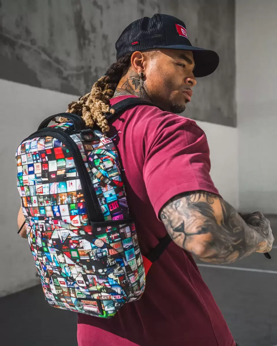 Abmessungen: 45,7 x 15,2 x 29,2 cm Vordertasche mit Reißverschluss Seitentaschen Reißverschlusstasche Separates Brillenfach aus Velours Ergonomische Netzrückenpolsterung Verstellbare Gurte für individuelle Anpassung Goldfarbene Reißverschlüsse mit Metallbeschlägen Metallplakette „Sprayground Authentic“ Durchschubtasche auf der Rückseite zur Befestigung am Handgepäck für freie Hände