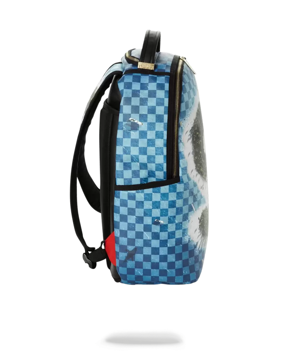 Abmessungen: 45,7 x 15,2 x 29,2 cm Vordertasche mit Reißverschluss Seitentaschen Reißverschlusstasche Ergonomische Netzrückenpolsterung Verstellbare Gurte für individuelle Anpassung Nylon-Reißverschlüsse mit Metallbeschlägen Metall-„Sprayground Authentic“-Logo Durchschubtasche auf der Rückseite zur Befestigung am Handgepäck für freie Hände Beutel mit Sprayground-Geld