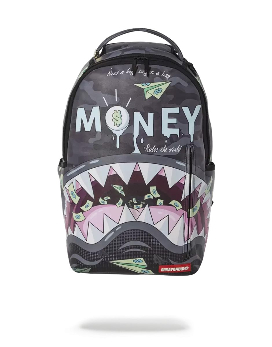 Abmessungen: 45,7 x 15,2 x 29,2 cm Vordertasche mit Reißverschluss Seitentaschen Reißverschlusstasche Separates Brillenfach aus Velours Ergonomische Netzrückenpolsterung Verstellbare Gurte für individuelle Anpassung Schwarze Blitzreißverschlüsse mit Metallbeschlägen Metallabzeichen „Sprayground Authentic“ Durchschubtasche auf der Rückseite zur Befestigung am Handgepäck für freie Hände