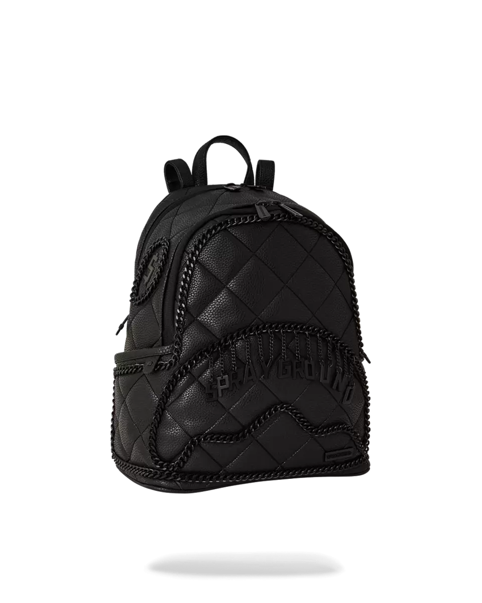 Schwarzes Kunstleder aus 100 % PVC-Steppung mit schwarzer Kettenhardware und Logo-Anhänger. Außenmaße: 10 x 5 x 11,5 cm. Zwei große Hauptfächer mit Reißverschluss.