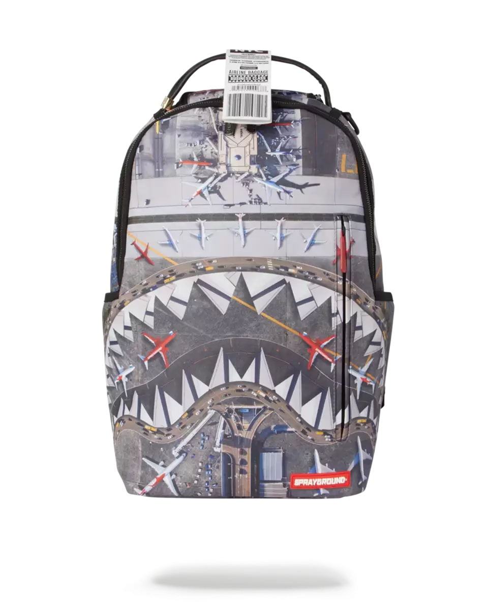 Abmessungen: 45,7 x 15,2 x 29,2 cm Vordertasche mit Reißverschluss Seitentaschen Reißverschlusstasche Separates Brillenfach aus Velours Ergonomische Netzrückenpolsterung Verstellbare Riemen für individuelle Anpassung Reißverschlüsse in Gunmetal und Rot mit Metallbeschlägen Metallplakette „Sprayground Authentic“ Durchschubtasche auf der Rückseite zur Befestigung am Handgepäck für freie Hände