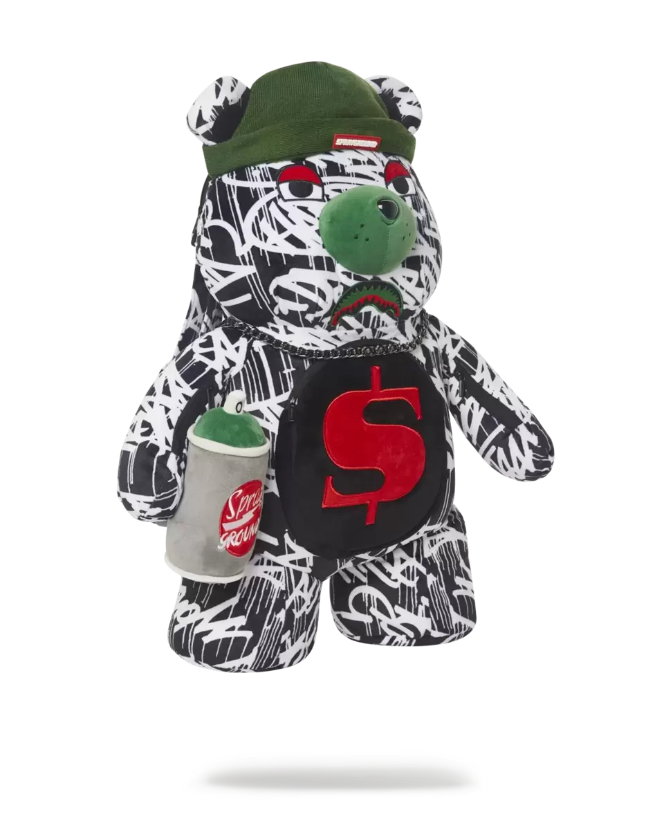 Money Bear ist zurück – als limitierte Teddybär-Rucksack-Edition mit goldener Halskette und Sprühdose. Maße: 25 x 7 x 12 cm. Reißverschlusstasche am Bauch.