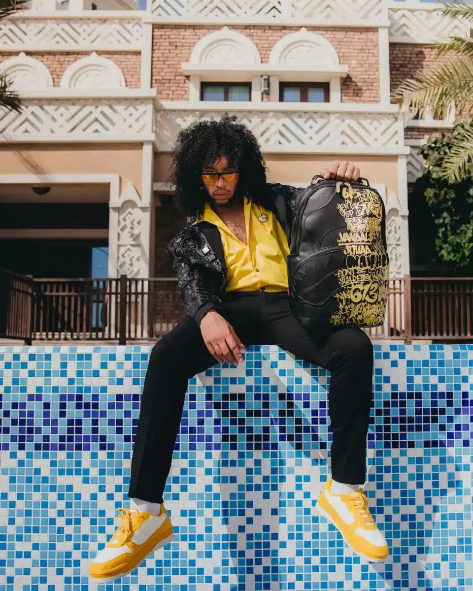 Abmessungen: 45,7 x 15,2 x 29,2 cm Vordertasche mit Reißverschluss Seitentaschen Reißverschlusstasche Separates Brillenfach aus Velours Ergonomische Netzrückenpolsterung Verstellbare Riemen für individuelle Anpassung Goldfarbene Reißverschlüsse mit Metallbeschlägen Metall-Badge „Sprayground Authentic“ Durchschubschlaufe am Rücken zur Befestigung am Handgepäck für freie Hände