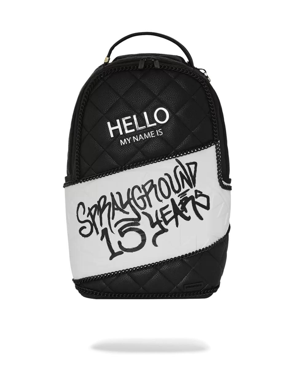 Gesteppter PVC-Rucksack mit Kettendetails, verziert mit Metallbuchstaben, exklusive Details für 15 Jahre Rucksack-Tradition