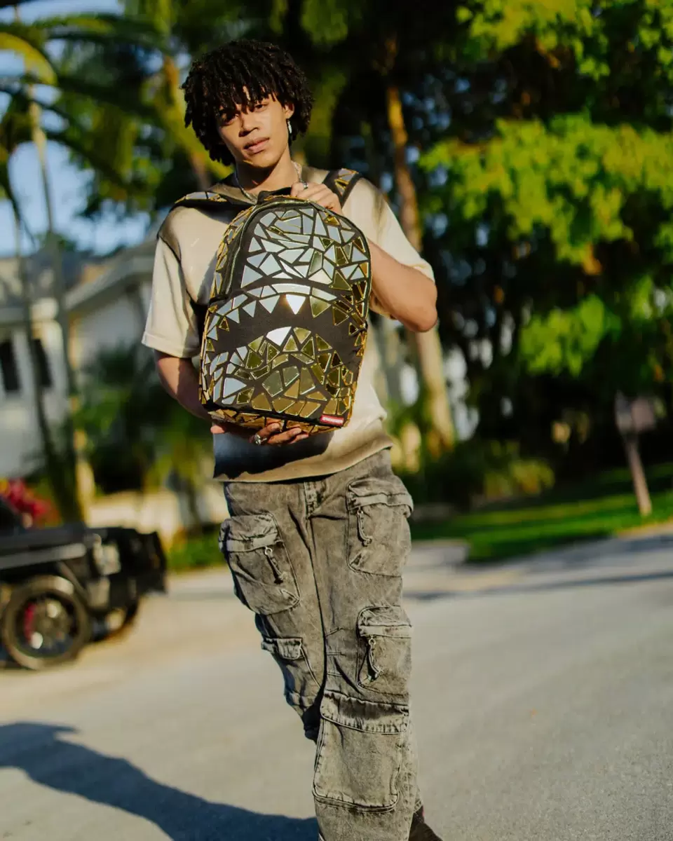 Abmessungen: 45,7 x 15,2 x 29,2 cm (18″ x 6″ x 11,5″) Vordertasche mit Reißverschluss Seitentaschen Reißverschlusstasche Separates Brillenfach aus Velours Ergonomische Netzrückenpolsterung Verstellbare Riemen für individuelle Anpassung Goldene Reißverschlüsse mit Metallbeschlägen Metall-Badge „Sprayground Authentic“ Durchschubtasche auf der Rückseite zur Befestigung am Handgepäck für freie Hände