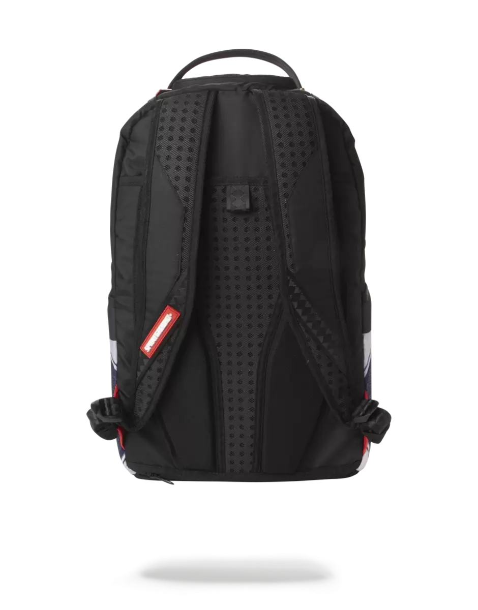 Abmessungen: 45,7 x 15,2 x 29,2 cm Vordertasche mit Reißverschluss Seitentaschen Reißverschlusstasche Separates Brillenfach aus Velours Ergonomische Netzrückenpolsterung Verstellbare Gurte für individuelle Anpassung Rote Reißverschlüsse mit Metallbeschlägen Metallplakette „Sprayground Authentic“ Durchschubtasche auf der Rückseite zur Befestigung am Handgepäck für freie Hände