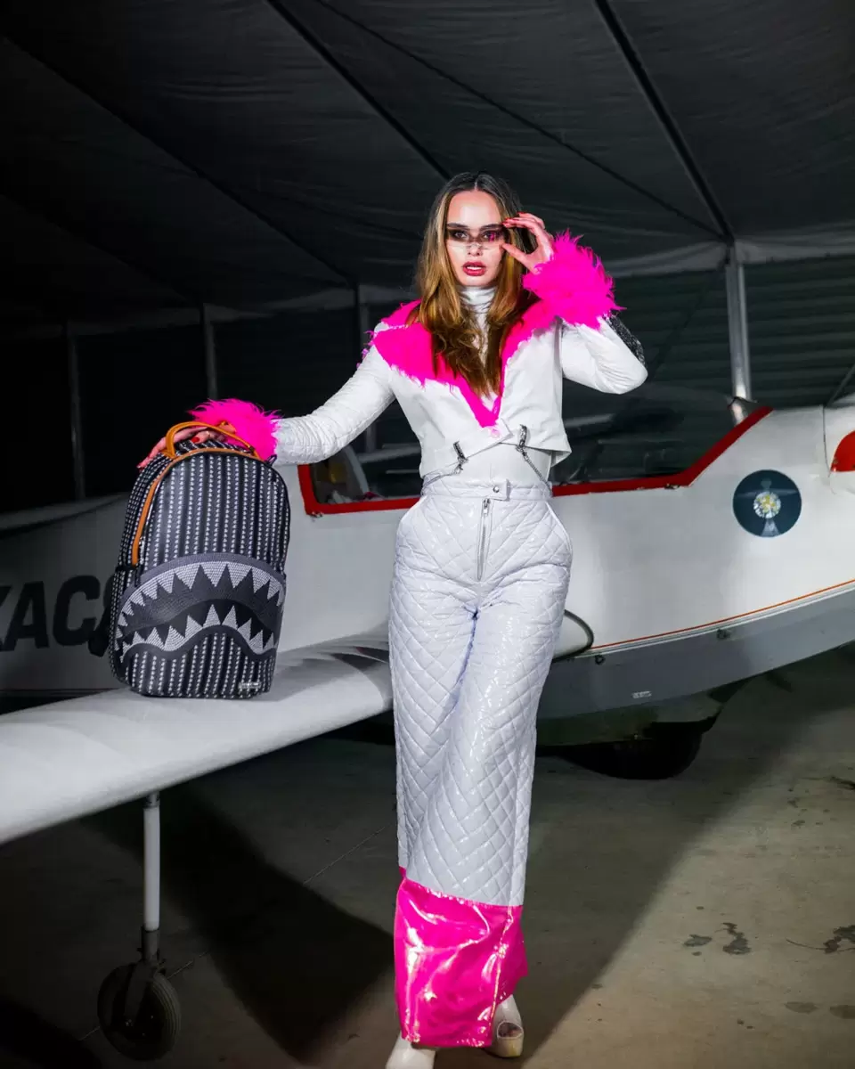 Abmessungen: 45,7 x 15,2 x 29,2 cm Vordertasche mit Reißverschluss Seitentaschen Reißverschlusstasche Separates Brillenfach aus Velours Ergonomische Netzrückenpolsterung Verstellbare Riemen für individuelle Anpassung Silberne Reißverschlüsse mit Metallbeschlägen Metall-Badge „Sprayground Authentic“ Durchschubtasche auf der Rückseite zur Befestigung am Handgepäck für freie Hände