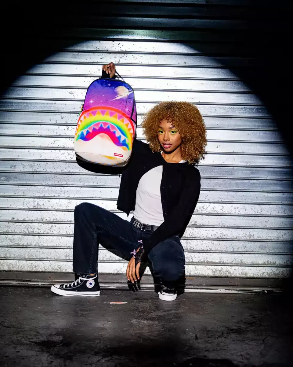 Abmessungen: 45,7 x 15,2 x 29,2 cm (18″ x 6″ x 11,5″) Vordertasche mit Reißverschluss Seitentaschen Reißverschlusstasche Separates Brillenfach aus Velours Ergonomische Netzrückenpolsterung Verstellbare Gurte für individuelle Anpassung Goldfarbene Reißverschlüsse mit Metallbeschlägen Metall-Badge „Sprayground Authentic“ Durchschubtasche auf der Rückseite zur Befestigung am Handgepäck für freie Hände