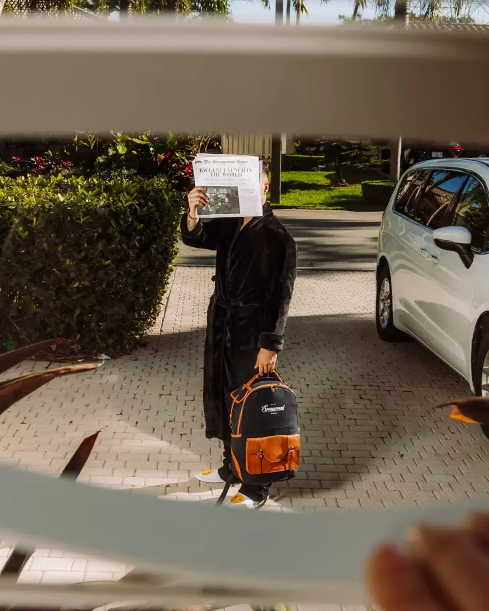 Abmessungen: 45,7 x 15,2 x 29,2 cm (18″ x 6″ x 11,5″) Vordertasche mit Reißverschluss Seitentaschen Reißverschlusstasche Separates Brillenfach aus Velours Ergonomische Netzrückenpolsterung Verstellbare Riemen für individuelle Anpassung Goldfarbene Reißverschlüsse mit Metallbeschlägen Metall-Badge „Sprayground Authentic“ Durchschubtasche auf der Rückseite zur Befestigung am Handgepäck für freie Hände