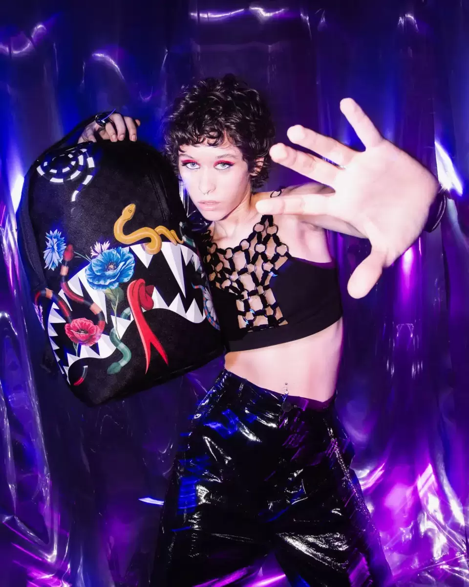Abmessungen: 45,7 x 15,2 x 29,2 cm Vordertasche mit Reißverschluss Seitentaschen Reißverschlusstasche Separates Brillenfach aus Velours Ergonomische Netzrückenpolsterung Verstellbare Gurte für individuelle Anpassung Goldfarbene Reißverschlüsse mit Metallbeschlägen Metallplakette „Sprayground Authentic“ Durchschubtasche auf der Rückseite zur Befestigung am Handgepäck für freie Hände
