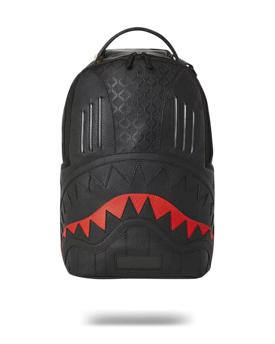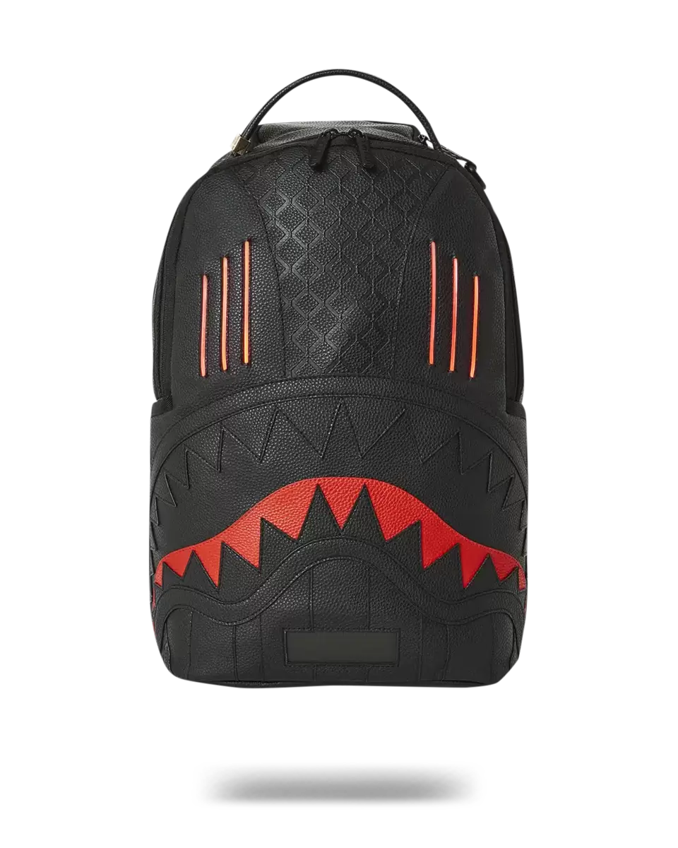 Bietet alle Basisfunktionen eines regulären DLX-PVC-Rucksacks. 100 % PVC, geprägtes, strukturiertes Gewebe. Details: Ausgeschnittenes und genähtes Haifischmaul, LED-Anzeige am Boden mit der Aufschrift „KNIGHT RIDER X SPRAYGROUND“, rote LED-Beleuchtung an der Vorderseite. Lädt mit einem Micro-USB-Kabel (im Lieferumfang enthalten).