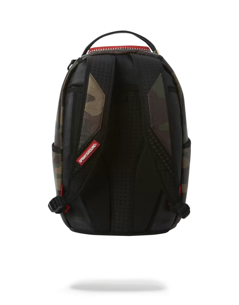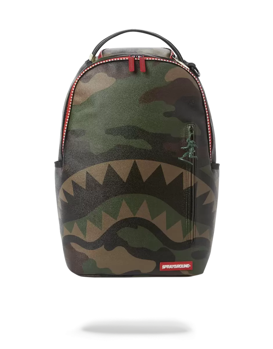 Abmessungen: 45,7 x 15,2 x 29,2 cm Vordertasche mit Reißverschluss Seitentaschen Reißverschlusstasche Separates Brillenfach aus Velours Ergonomische Netzrückenpolsterung Verstellbare Gurte für individuelle Anpassung Rote, goldene und Army-Reißverschlüsse mit Metallbeschlägen Metallabzeichen „Sprayground Authentic“ Durchschubtasche auf der Rückseite zur Befestigung am Handgepäck für freie Hände